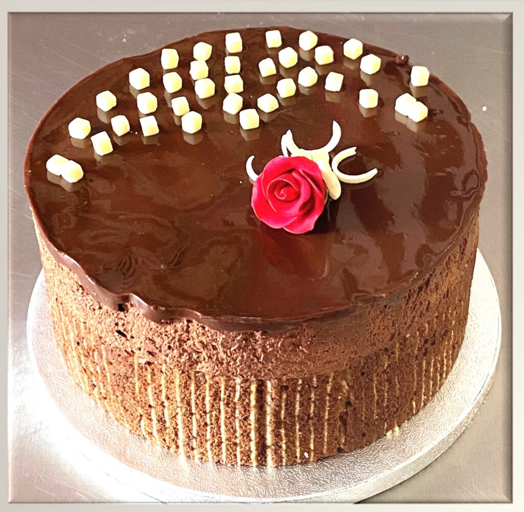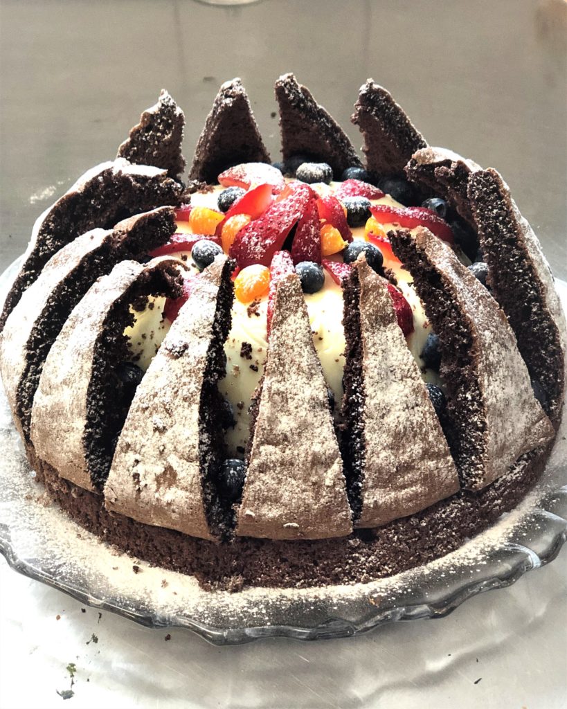 Vulkantorte mit Puddingcreme und Früchten für ca. 16 Gäste