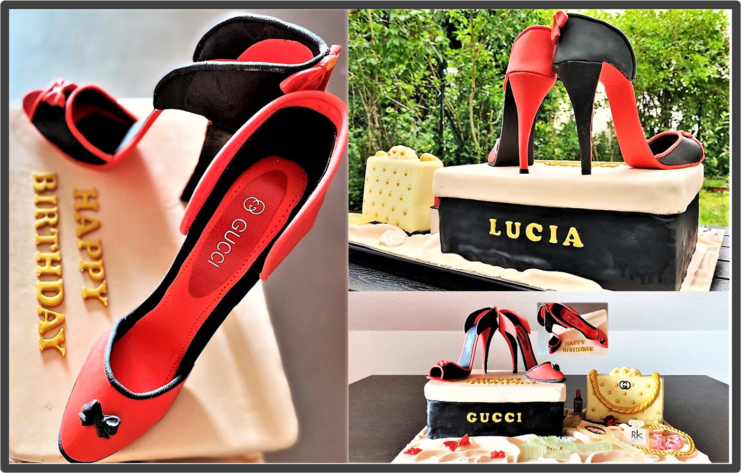 Der Schuhkarton ist ein zarter Biskuitboden mit einer Mango – Frischkäsefüllung.