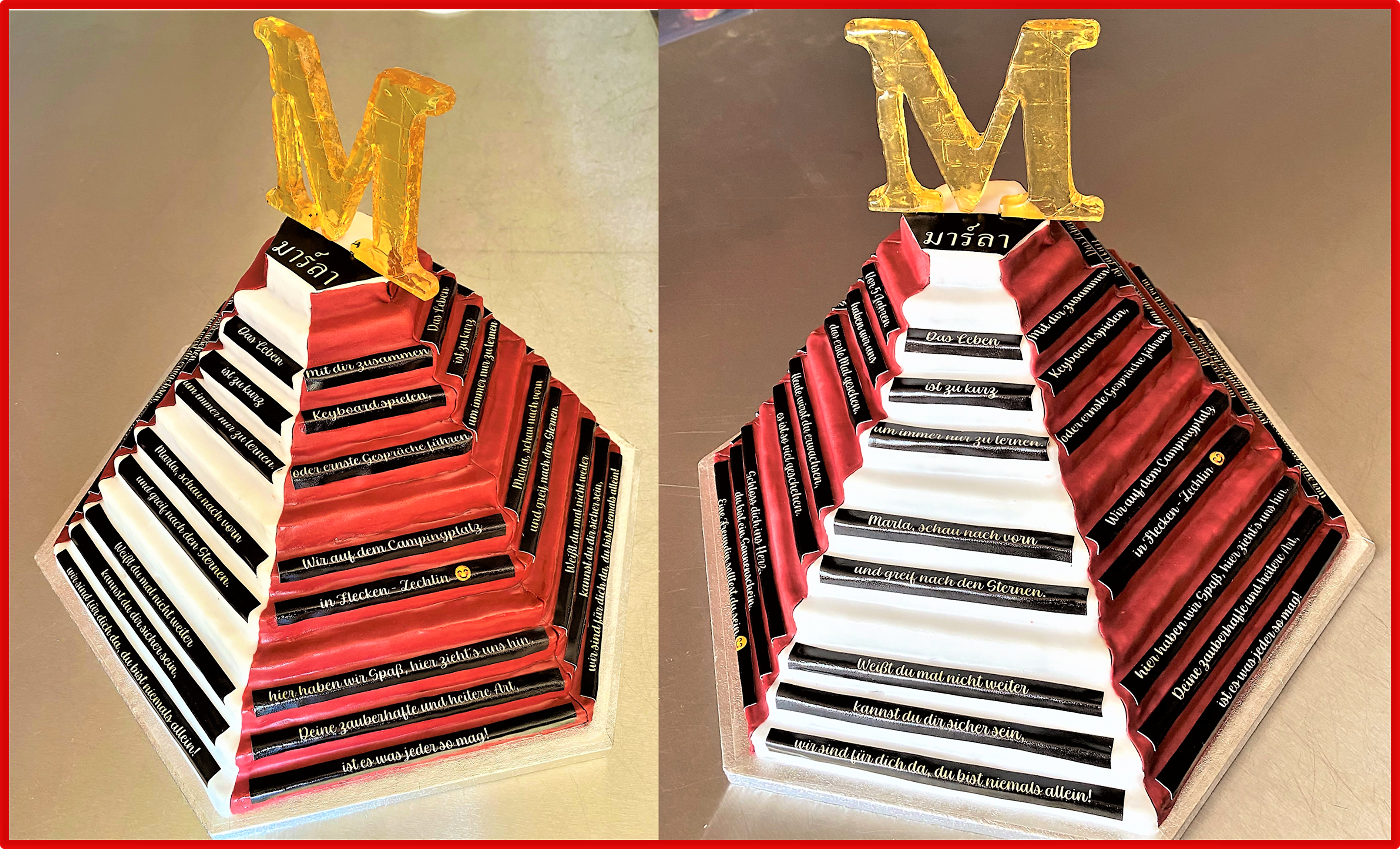 Bei dieser Torte profitierte jeder von der Handarbeit mit frisch zubereiteten Teigen und Füllungen, wobei diese über den „Speisekanal“ transportiert werden.