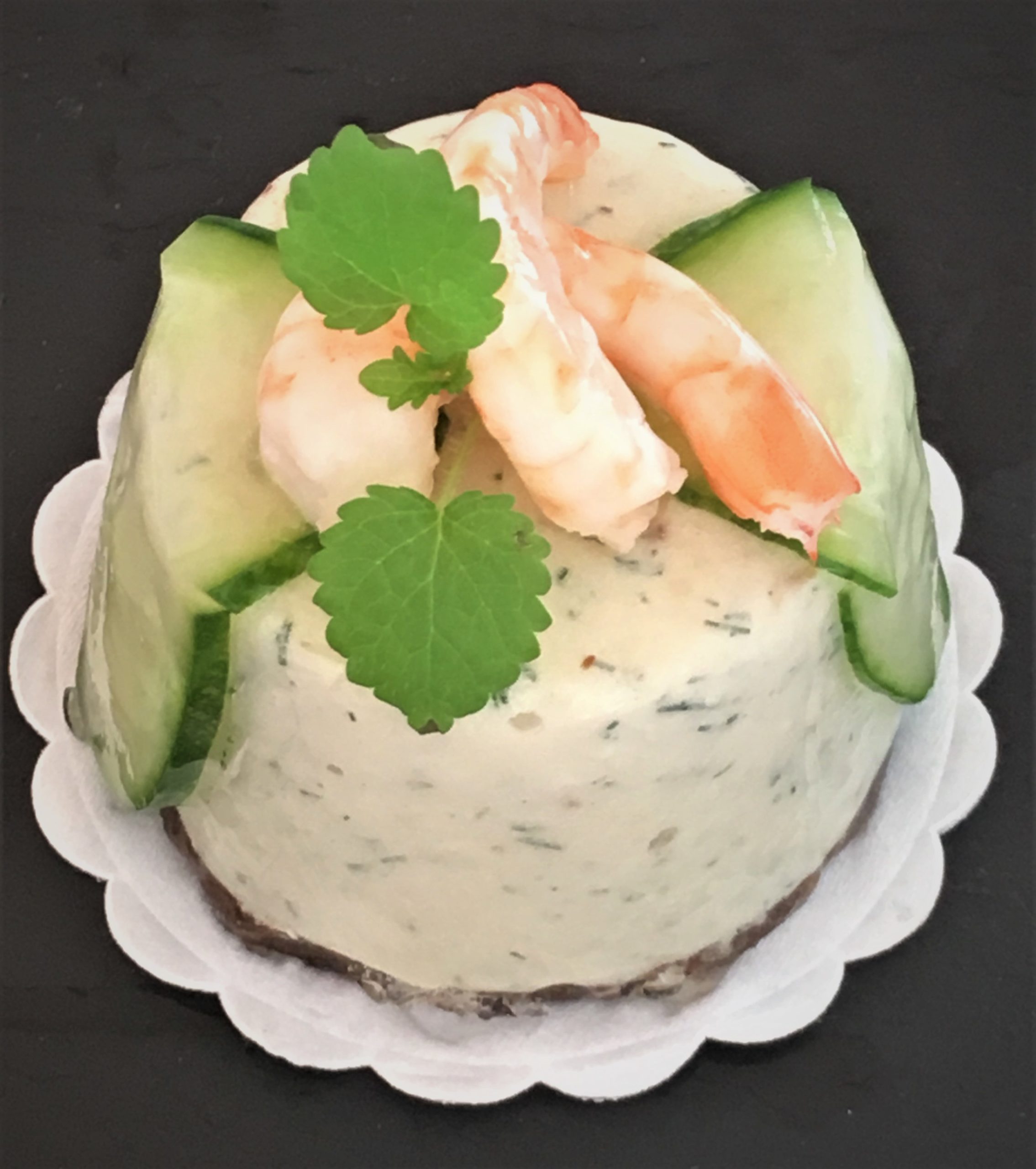 Lachs – Dillmousse mit Garnelen und Gurke